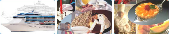 Group lessons (aerobics, stretching, body-dancing, step) are organized for energetic guests with top fitness instructors. Ultra-modern gyms are equipped with the latest Technogym Fitness equipment. Found worldwide, this state-of-the-art equipment offers guests a personal Technogym key that can be used to save personal settings, track results and take your fitness program with you to a landside Technogym facility. Plus, each gym offers free- weights, an aerobics area and personal fitness training in a state-of-the-art gym where floor to-ceiling glass windows offer unsurpassed views.