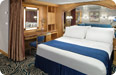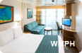 Occupancy: 4 All staterooms and suites come complete with private bathroom, vanity area, hair-dryer, closed-circuit TV, radio and phone. Two twin beds that convert to Royal King, private balcony, sitting area with ... Read More All staterooms and suites come complete with private bathroom, vanity area, hair-dryer, closed-circuit TV, radio and phone. Two twin beds that convert to Royal King, private balcony, sitting area with sofa bed and private bathroom with tub. Read Less Cabin Size: 241 sq ft Balcony Size: 64 sq ft