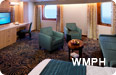 Occupancy: 6 All staterooms and suites come complete with private bathroom, vanity area, hair-dryer, closed-circuit TV, radio and phone. Two sets of two twin beds that convert to Royal King, sitting area ... Read More All staterooms and suites come complete with private bathroom, vanity area, hair-dryer, closed-circuit TV, radio and phone. Two sets of two twin beds that convert to Royal King, sitting area with sofa bed, separate area with bunk beds and a private bathroom with shower. Read Less Cabin Size: 246 sq ft