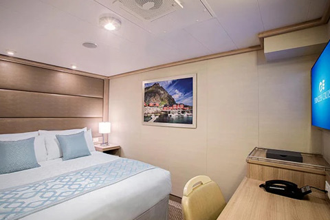These staterooms are the perfect place to recharge your batteries. Our most affordable option, featuring two twin beds or a queen-size bed. Other amenities include a refrigerator, hair dryer, TV, closet and bathroom with shower.