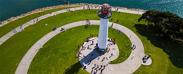 Located on the eastern side of Long Beach, Naples Island is known for its scenic canals, modeled after the waterways of Italy. Visitors can explore the charming neighborhood on foot or by bike, but the most unique experience is a gondola ride through the canals. This romantic and relaxing activity provides a peaceful contrast to the busy port area, with views of beautiful waterfront homes and arched bridges. During the holidays, the canals are especially magical with festive lights reflecting off the water.