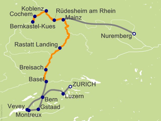 From Zurich, (Switzerland) to Nuremberg, (Germany)