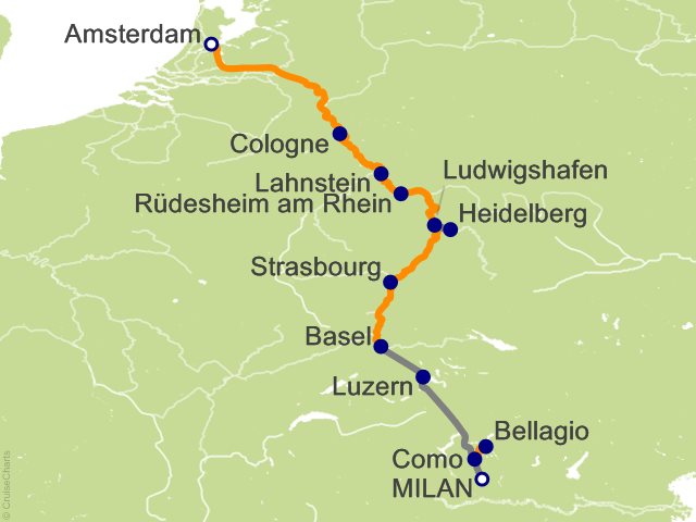 Check out of your Lake Como hotel and, en route to Basel, you will stop in Lucerne for a short orientation tour and free time for lunch. Once you arrive in Basel, embark your ship for your Swiss Alps & Rhine Castles cruise. (B,D)