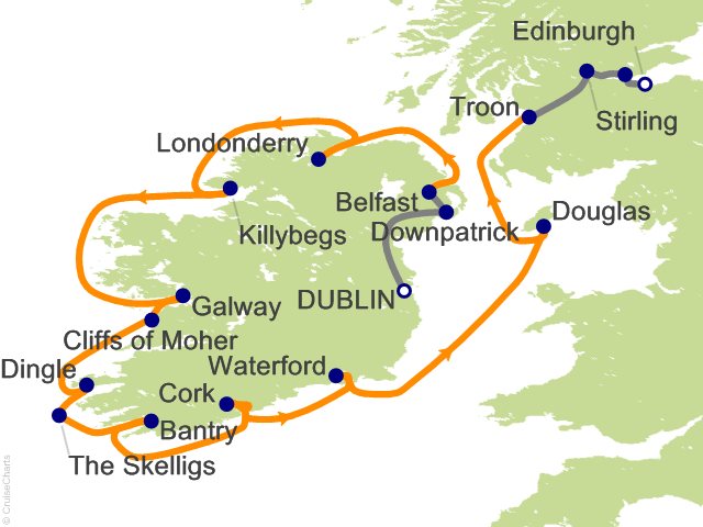 Once described by National Geographic Traveller as 'the most beautiful place on earth', Dingle is away from the general 'tourist route', affording us exclusive access to the wild west coast. Traditionally a fishing port, Dingle Harbour is where we anchor and tender into town. Known for its rugged scenery, dramatic cliffs, and sandy beaches, the surrounding promontory is the coastal heart of County Kerry, while Dingle itself has a bohemian flair and is famous for its hardware pubs where you can enjoy a brew and buy wares. We enjoy lunch onboard before tendering ashore to experience a slice of Ireland's rural lifestyle, while viewing the wild side of the country and the Irish who call County Kerry home. We sail late afternoon, to bask in the last rays of sunlight as we slow to pass the Skellig Islands. Off the coast of County Kerry, two rocky pinnacles rise from the Atlantic Ocean. The Skellig Islands are world-renowned for their ornithological and archaeological significance. Skellig Michael is the site of a well-preserved monastic outpost of the Early Christian period and is now designated a UNESCO World Heritage Site. Little Skellig is equally renowned in matters of ornithology. As the home of 27,000 pairs of gannets, it is the second-largest colony of such seabirds in the world. Some 1,400 years ago a congregation of monks were searching for a place to practice their religion in complete solitude and isolation. Determined to build a monastery on these remote islands, generation after generation of monks hand-carved 600 stone steps with the simplest tools to build a hilltop monastery 600 feet above the pounding waves. The survival of the terraces, oratories, and six corbel stone beehive huts are to this day a testament to their skill and dedication. The archaeological remains show the dramatically spartan conditions in which the monks lived; however, after enduring several Viking raids, the monks eventually left the island in the 13th century. The site has subsequently become a place of Christian pilgrimage. Note: The Office of Public Works (OPW) manages the Skelligs, and they no longer allow cruise ship passengers to land on Skellig Michael. Visitor numbers to Skellig Michael in recent years have reached the maximum permitted by UNESCO and any violation of UNESCO criteria will affect the future UNESCO status of the island. From the elevated height of our vessel, we will enjoy a cruise of the islands. ...