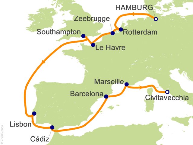 From Hamburg, (Germany) to Civitavecchia (Rome), (Italy)