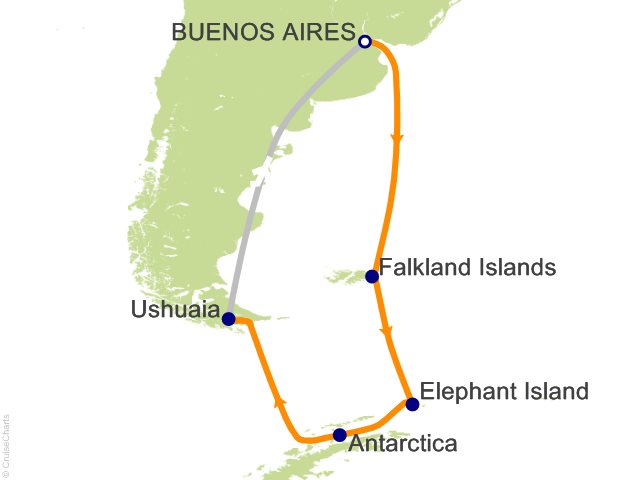 Latin passion and European romance spark a dynamic combination that makes Buenos Aires such a captivating city. The Captain and crew will greet you with a warm welcome and a sparkling glass of champagne as you board your spectacular ultra-luxury yacht for the start of a 15-night Expedition Voyage. Meet your fellow guests and acquaint yourself with your yacht's luxuriously appointed offerings. Toast the beginning of your journey from the open deck, as you wave farewell to the coast and tap glasses with a hearty "saude". Please note: Due to the extraordinary nature of this region, Discovery Excursions throughout your Expedition Voyage are dependent on the weather conditions. Your experienced Captain and specialist polar Discovery Team, who have made countless journeys to Antarctica and the Falkland Islands, will use their expertise to design your voyage from day to day, making the most of your time in this spectacular destination. Inclusions: Dinner. ...