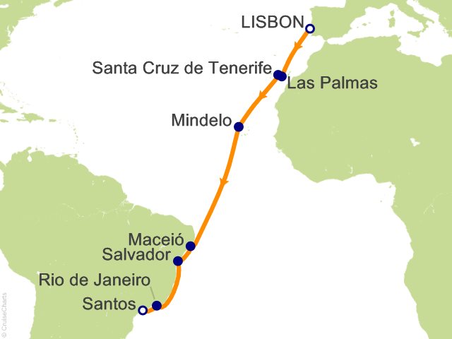 From Lisbon, (Portugal) to Santos (Sao Paulo), (Brazil)