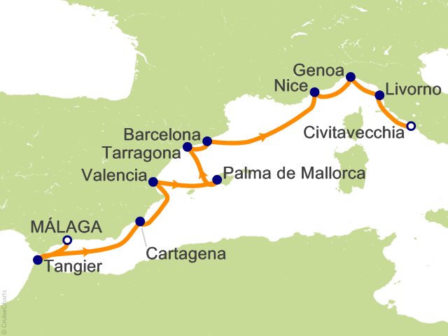 From Malaga, (Spain) to Civitavecchia (Rome), (Italy)