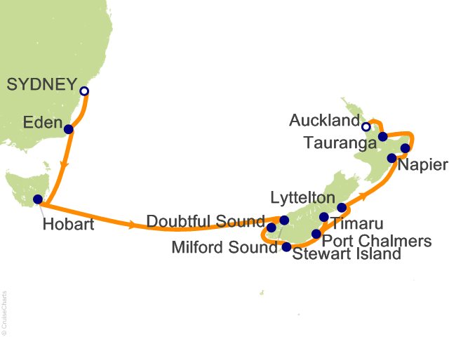 From Sydney, New South Wales, (Australia) to Auckland, (New Zealand)