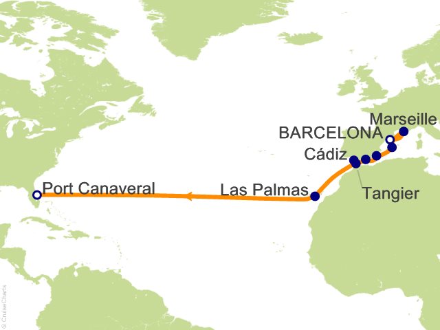 From Barcelona, (Spain) to Port Canaveral, Florida, (United States)
