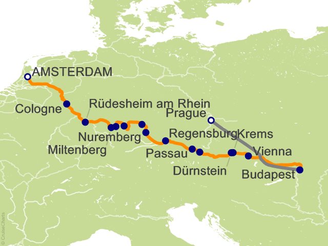 From Amsterdam, (Netherlands) to Prague, (Czech Republic)