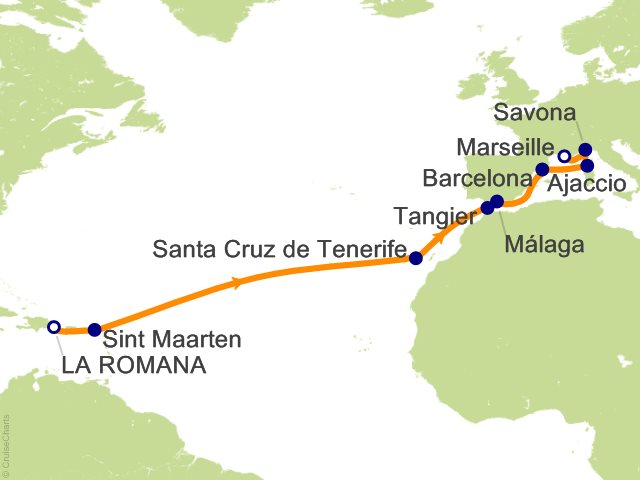 From La Romana, (Dominican Republic) to Marseille, (France)