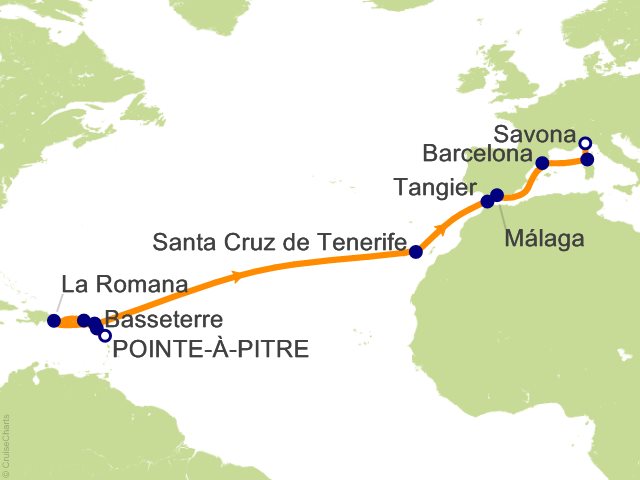 From Pointe-a-Pitre, (Guadaloupe) to Savona, (Italy)