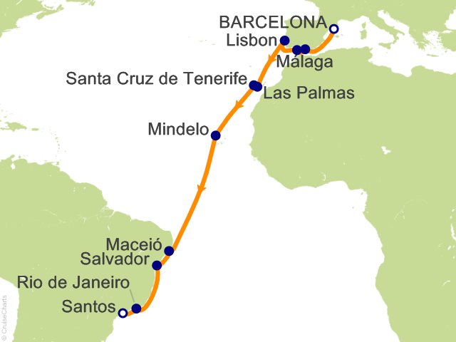 From Barcelona, (Spain) to Santos (Sao Paulo), (Brazil)