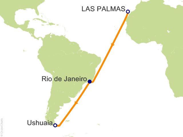 From Las Palmas, (Spain) to Ushuaia, (Argentina)
