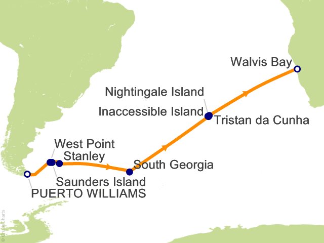 From Puerto Williams, (Chile) to Walvis Bay, (Namibia)