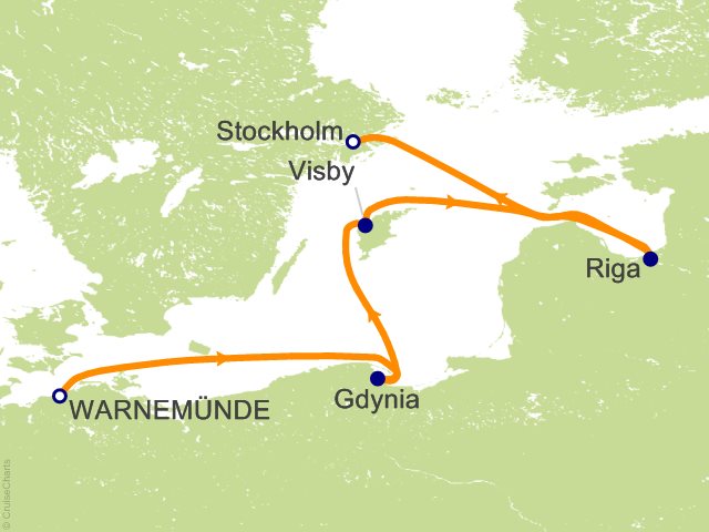 From Warnemunde, (Germany) to Stockholm, (Sweden)