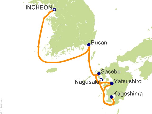From Seoul (Incheon), (South Korea) to Nagasaki, (Japan)