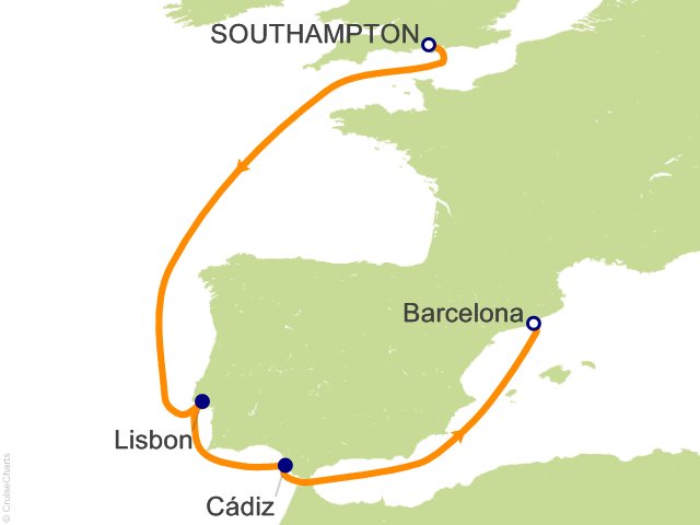 From Southampton, (United Kingdom) to Barcelona, (Spain)