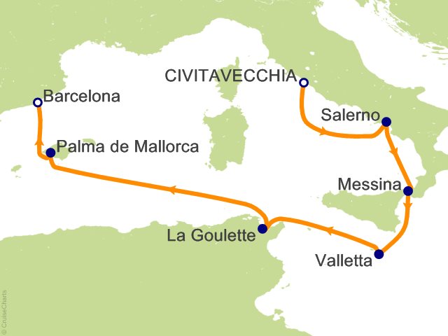 From Civitavecchia (Rome), (Italy) to Barcelona, (Spain)