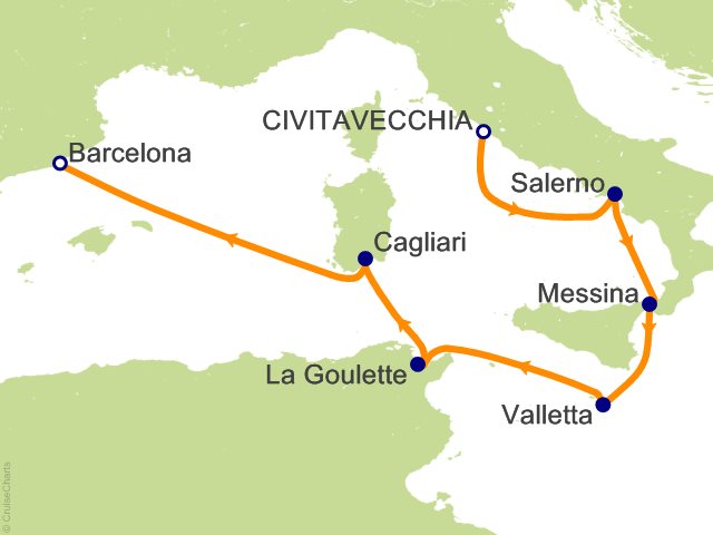 From Civitavecchia (Rome), (Italy) to Barcelona, (Spain)
