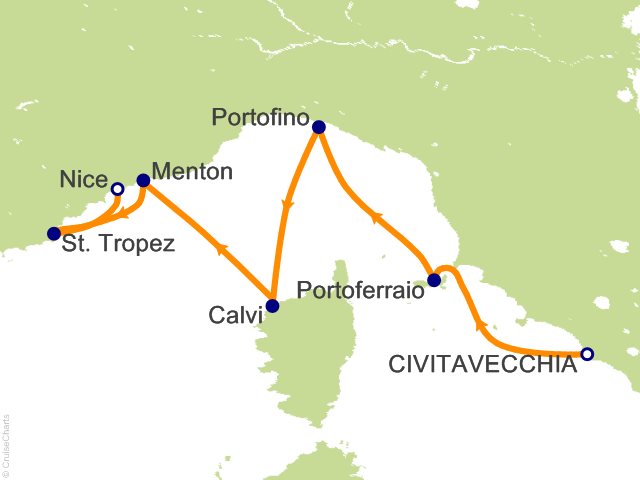 From Civitavecchia (Rome), (Italy) to Nice, (France)