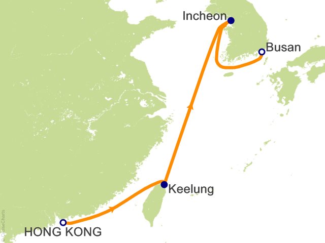 From Hong Kong, (Hong Kong) to Busan (Pusan), (South Korea)