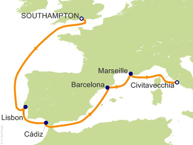 From Southampton, (United Kingdom) to Civitavecchia (Rome), (Italy)
