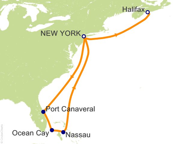 From New York, New York, (United States) to Halifax, Nova Scotia, (Canada)