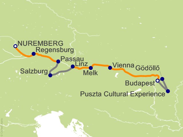 From Nuremberg, (Germany) to Budapest, (Hungary)