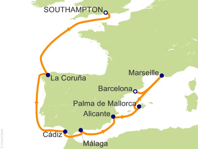 From Southampton, (United Kingdom) to Barcelona, (Spain)